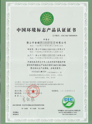 2014中國(guó)環(huán)境標(biāo)志產(chǎn)品認(rèn)證證書(shū)英文版(新達(dá))
