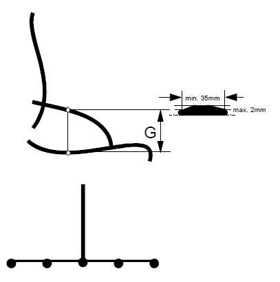 扶手支撐表面(表面曲線深度為2mm處測得)的有效寬度應(yīng)至少為35mm。