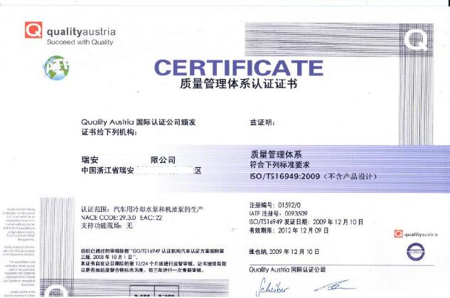 ISO/TS16949:2009是國際汽車行業(yè)的技術(shù)規(guī)范,是在ISO9001的基礎(chǔ)上,加進(jìn)了汽車行業(yè)的技術(shù)規(guī)范。此規(guī)范完全和ISO9001:2008保持一致,但更著重于缺陷防范、減少在汽車零部件供應(yīng)鏈中容易產(chǎn)生的質(zhì)量波動和浪費。