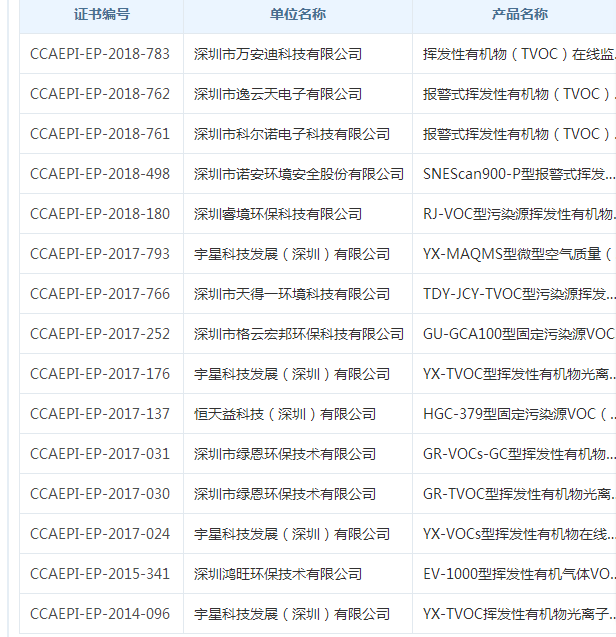 今天東方信諾整理了一下目前VOC在線監(jiān)測(cè)系統(tǒng)有多少家通過(guò)了CCEP環(huán)保認(rèn)證,現(xiàn)在系數(shù)一下深圳通過(guò)認(rèn)證的